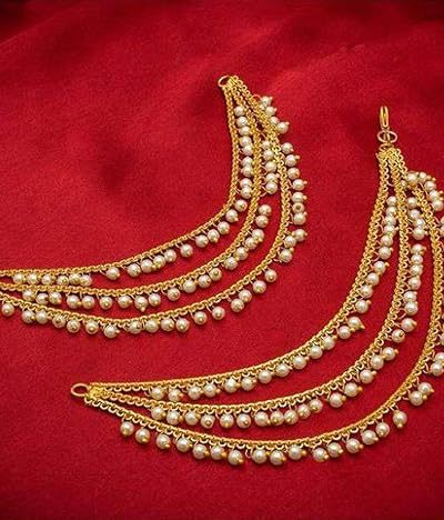 MEENAZ Brass copper Gold kanchain 3 layer long bridal wedding ear kan chain…