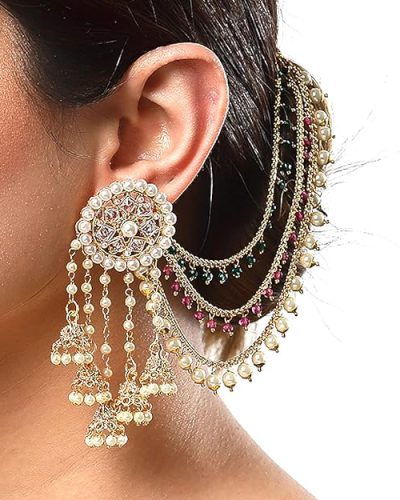 ZENEME Women’s Golden Gold Plated Long Hair Chain Jewellery Earring