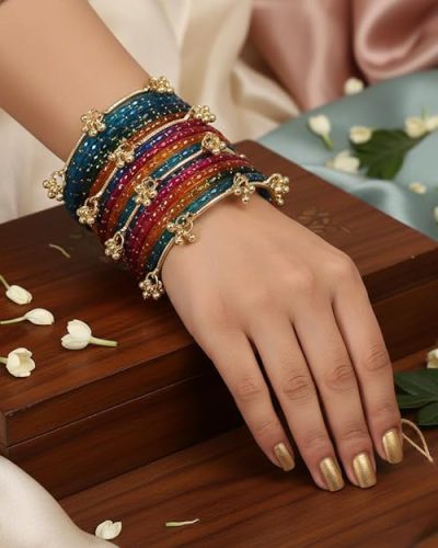 - Eye-Catching Details: Features intricate golden ghungroo-style decorations along the bangles that create a distinctive jingling sound and add visual appeal to your jewellery collection